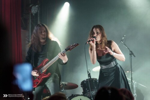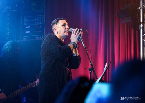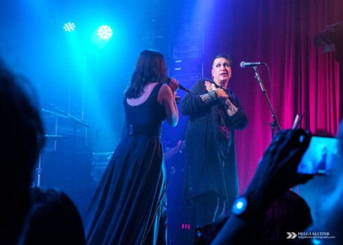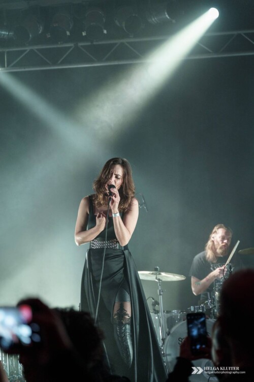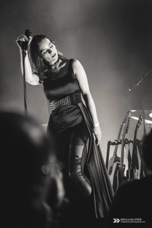 The second band on stage during Implode Again was Sündenrausch, a band that would best be described as melodic dark rock, with songs both in English and German. Lead singer Kira’s voice is clear and has the right kind of warmth to it, which really suits the guitars and the melodies. And the music’s even quite danceable. Never expecting too much from support acts, this for me was a pleasant surprise.